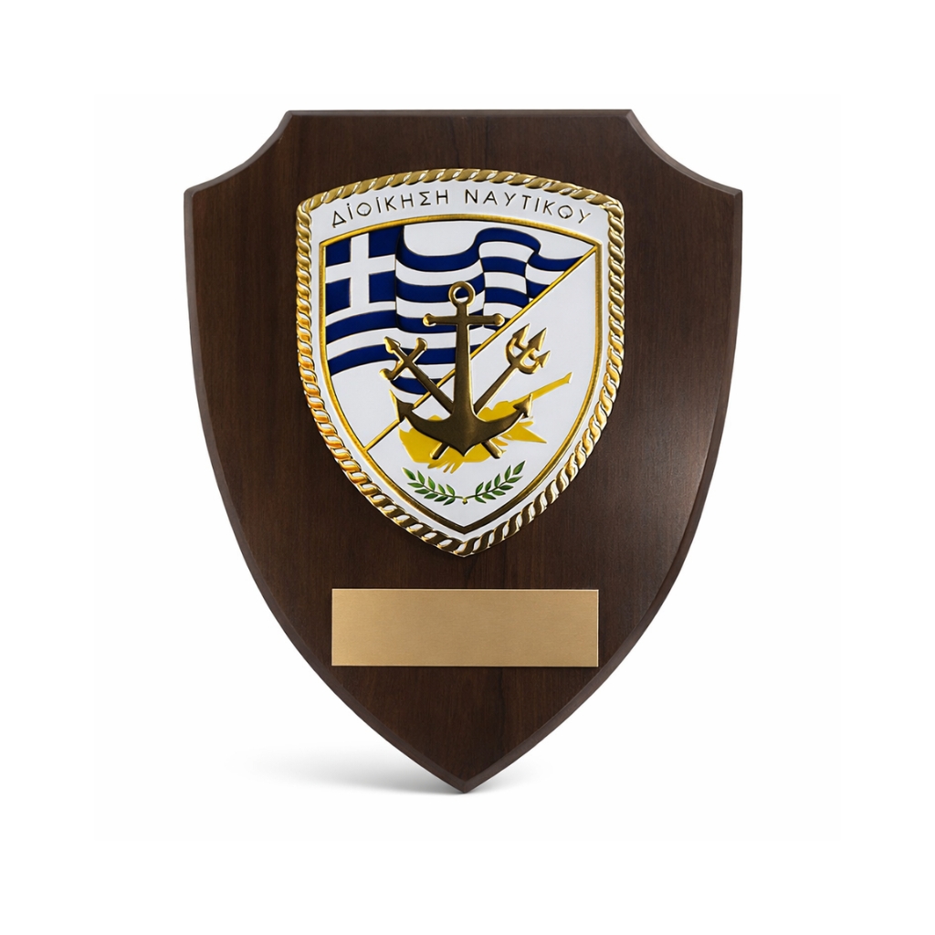 ΔΙΟΙΚΗΣΗ ΝΑΥΤΙΚΟΥ SHIELD PLAQUE 22X18CM WITH CUSTOM PRINTED PLATE – PERSONALIZED