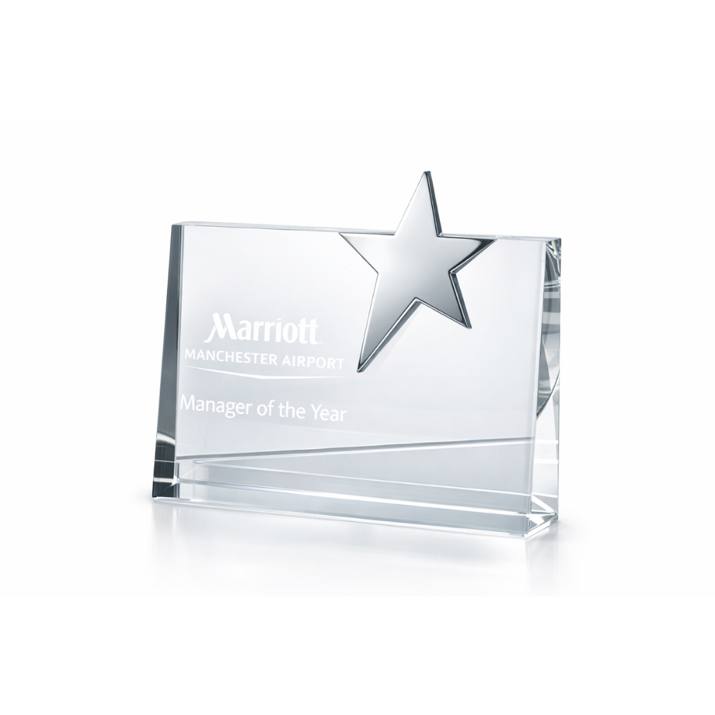 CRYSTAL HOR. RECT. WITH SILVER STAR 20CM