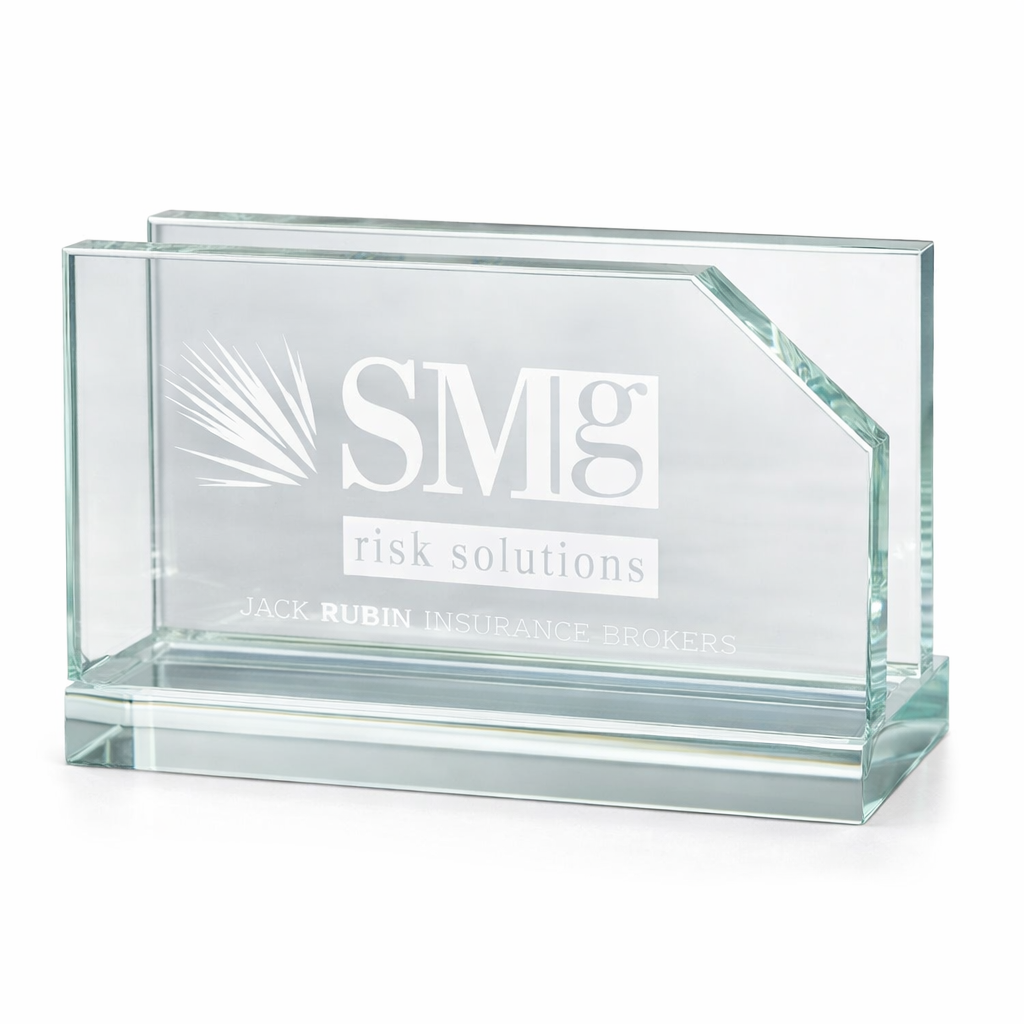 GLASS BUSINESS CARD HOLDER 10X5X5CM – PREMIUM DESK ACCESSORY WITH GIFT BOX