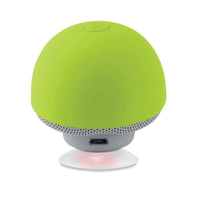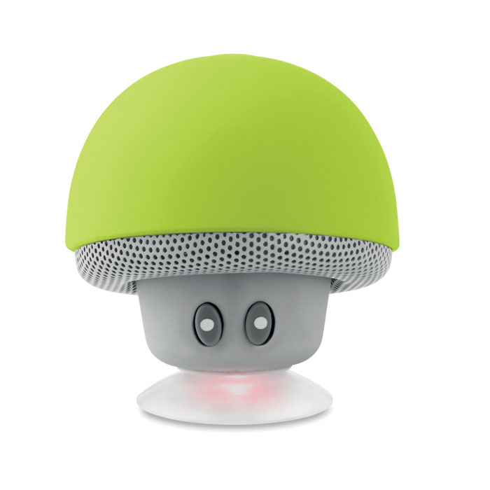 Mushroom shaped 5.0 wireless speaker/phone stand in ABS with suction cup. 1 Rechargeable Lithium 180 mAh battery. Including USB charging cable and 3,5 mm plug. Output data: 4 Ohm, 5V and 3W. Playing time aprox. 2h. O5,5 x 5cm