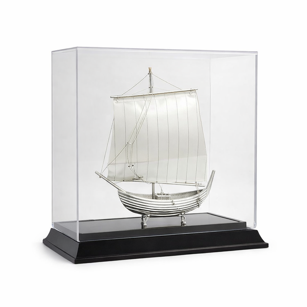 SILVER-PLATED KYRENIA SHIP IN PLEXIGLASS DISPLAY BOX – MEDIUM (15X19CM)