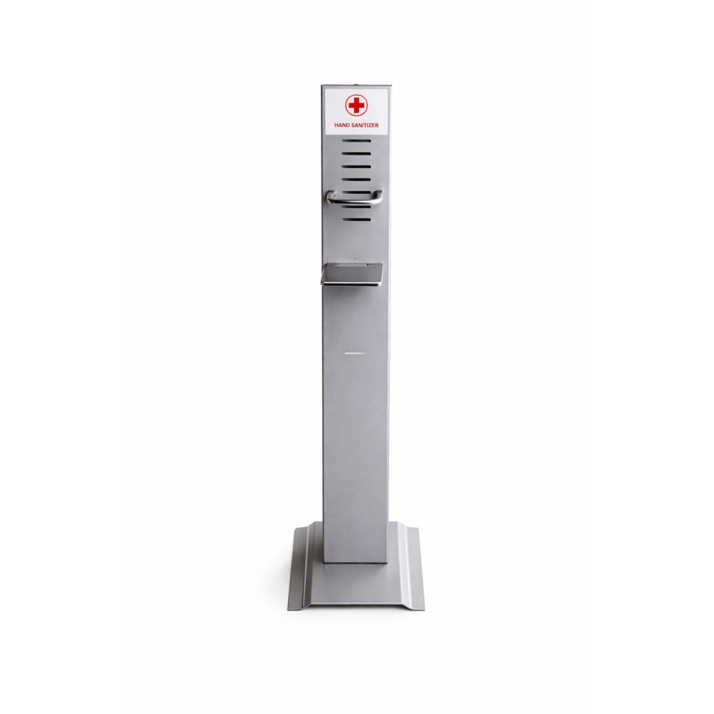 THIS ALUMINIUM STANDS FOR AN AUTOMATIC HANDS-FREE LIQUID HAND SANITIZER/SOAP DISPENSER THAT HELPS TO IMPROVE HAND HYGIENE AND TO REDUCE THE SPREAD OF GERMS.
