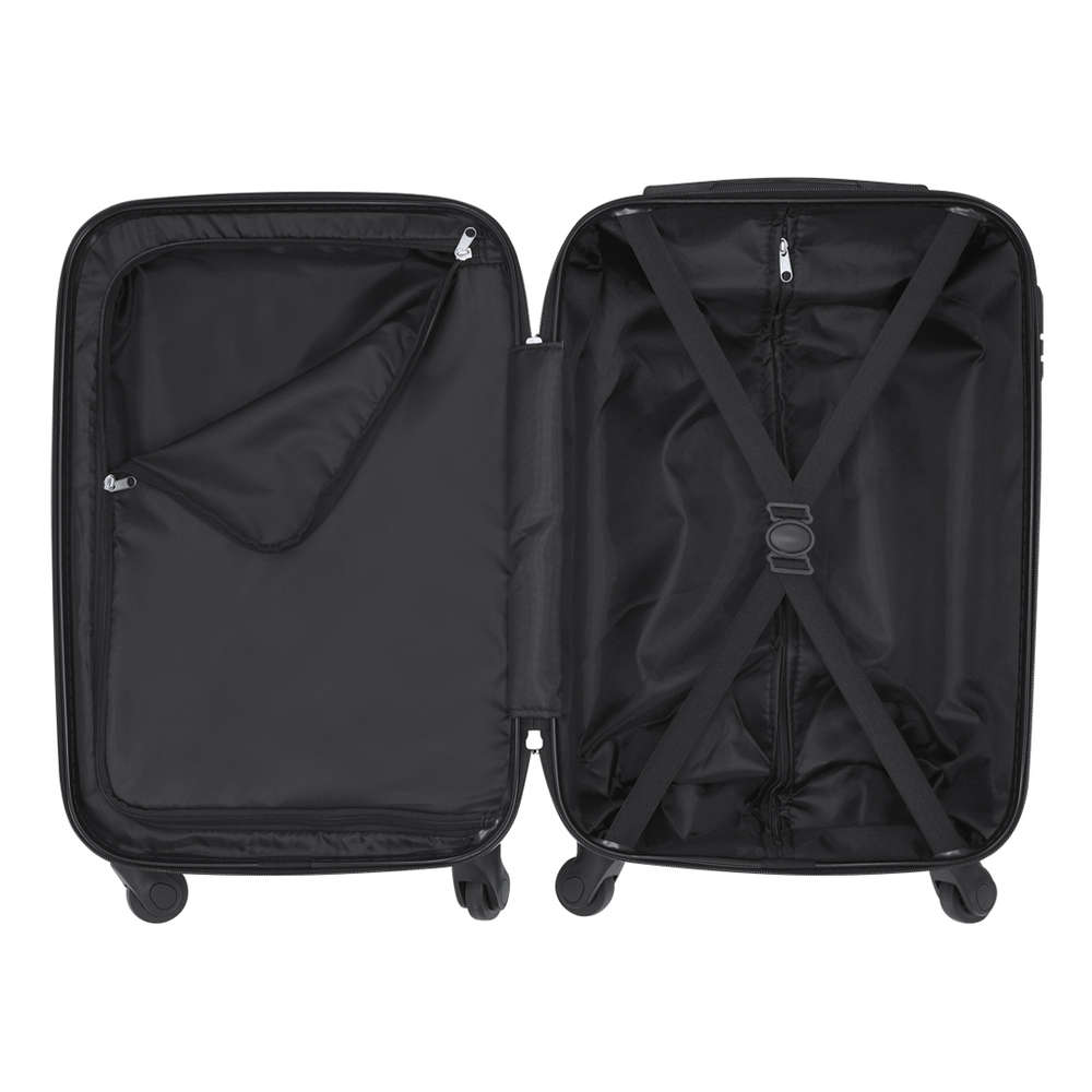 Trolley ideal for customisation with your own design. Features a transparent PC front cover that allows easy insertion of the desired design, providing maximum visibility. The back is made of durable black ABS, offering strength and resistance. Equipped with side security lock with combination and double pullers on zippers. Inside includes a zipped compartment and adjustable straps. With telescopic handle and 4 swivel wheels.