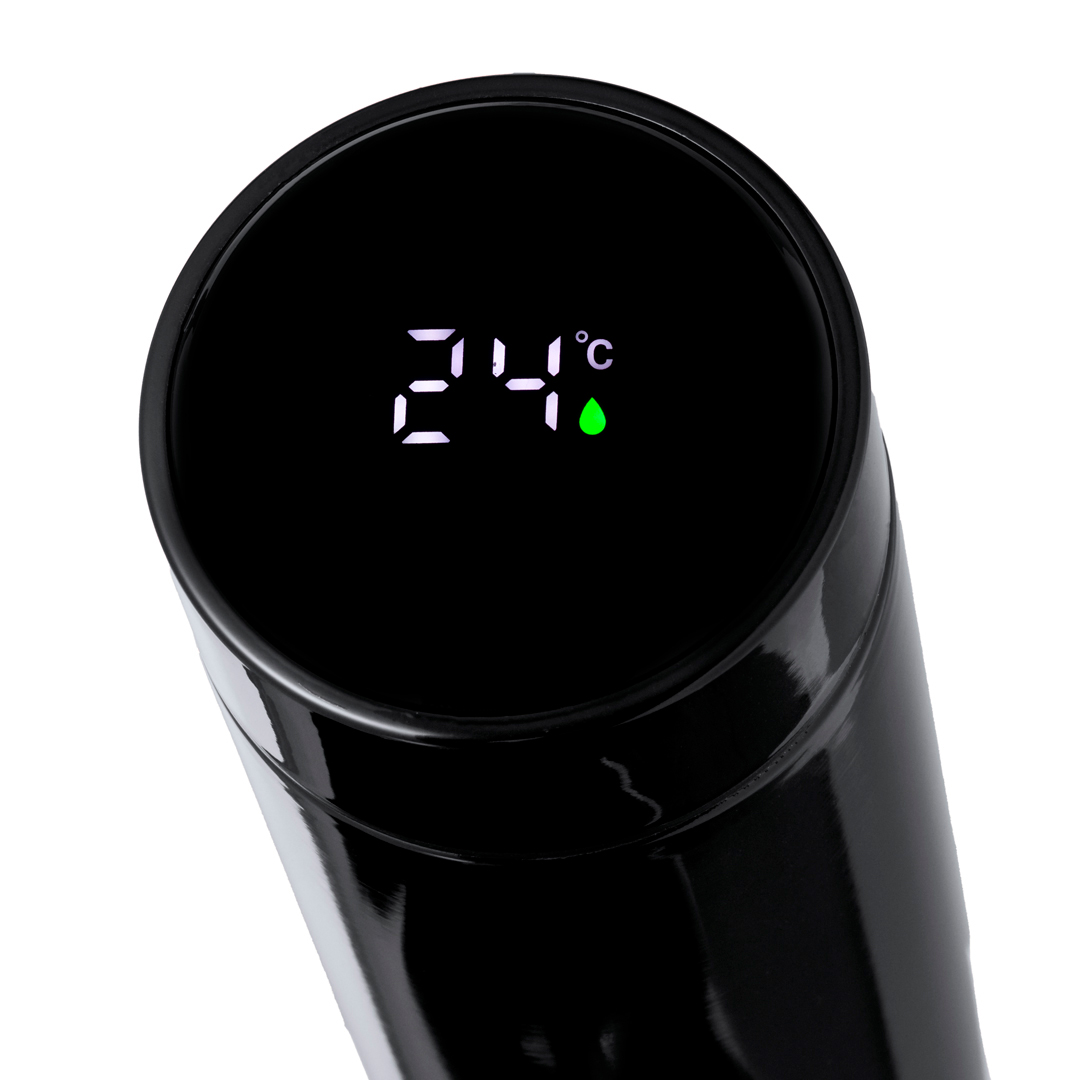 High quality, double-wall, 450 ml capacity thermal flask with tactile temperature gauge integrated in the cap. Made in stainless steel, which offers exceptional strength and durability and including stainless steel cap with integrated, BPA-free, infuser. Battery powered (button cell included), with instructions manualin English and Spanish. Available in a wide range of colours and presented in an attractive kraft design box.